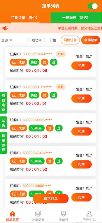 類似“碼幫平臺/FZ輔助/碼力平臺/閃電接單/蜻蜓輔助/雛菊輔助”,第三方微信輔助注冊任務(wù)管理平臺——“蜜蜂”任務(wù)平臺管理系統(tǒng),幫助有大量微信注冊需求的商家和想要0元投入月入過萬的兼職人員搭建連通的橋梁。系統(tǒng)由用戶端H5/APP、商家端H5/APP、地推商戶端H5、商家端PC、平臺端PC架構(gòu)而成,支持用戶隨時提現(xiàn),支付寶實(shí)時到賬,商家端一鍵掃碼下單,方便快捷;系統(tǒng)支撐商家每天10萬+的訂單下發(fā)和用戶隨時隨地?fù)寙危鰡危嵢蚪穑岈F(xiàn)等更多功能。。。